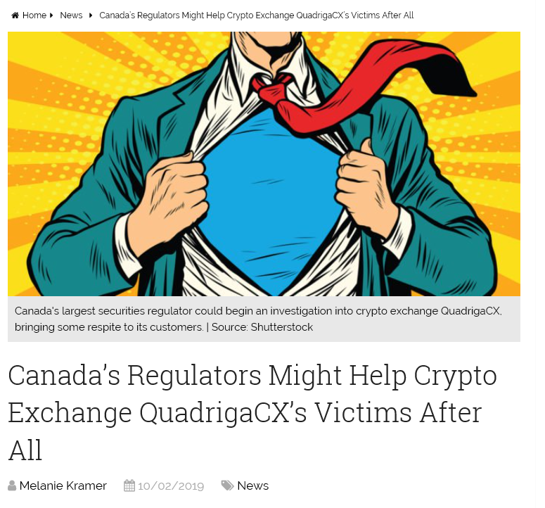 OSC는 콰드리가 거래소가 증권법을 위반했는지 확인 할 것이고, 피해자들을 최대한 도와줄 것이라고 한다.