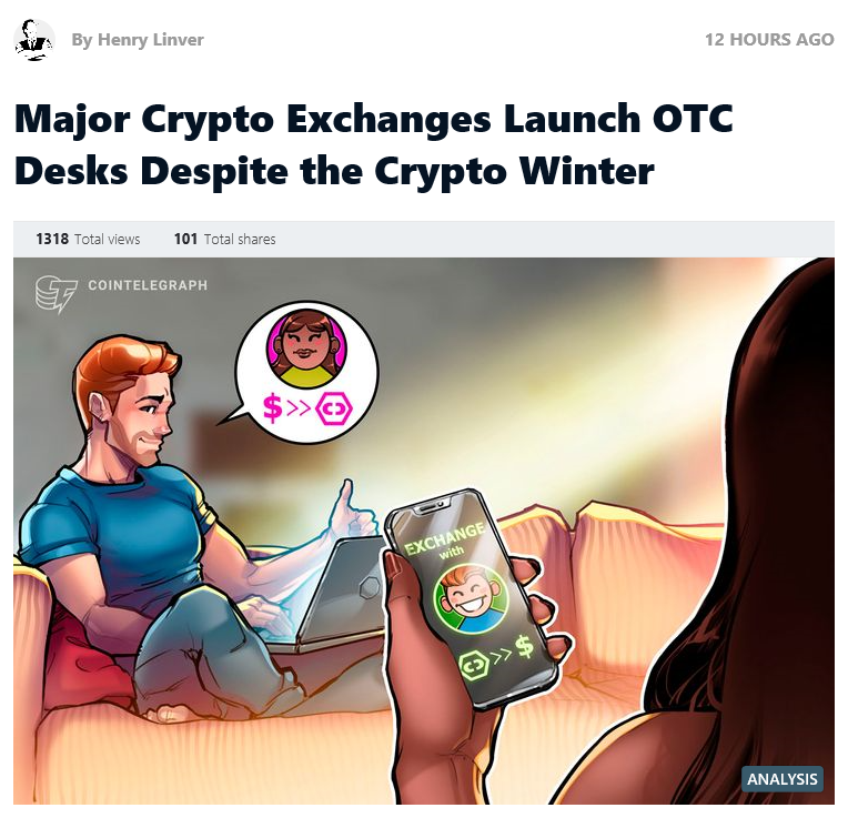 여러 대형거래소들은 장외거래(OTC) 마켓을 열어 암호 화폐 거래의 미래로 주목 받고 있다고 한다.