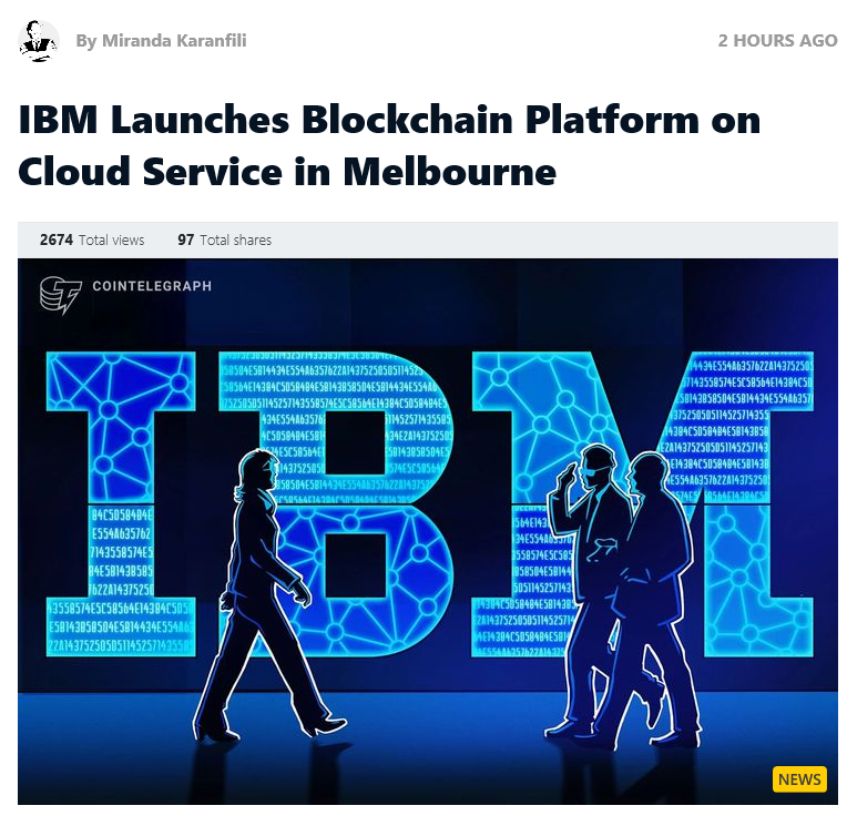 세계적으로 유명한 IT회사 IBM은 호주 멜버른에 위치한 데이터 센터에서 블록체인 메인 넷을 출시했다고 한다.