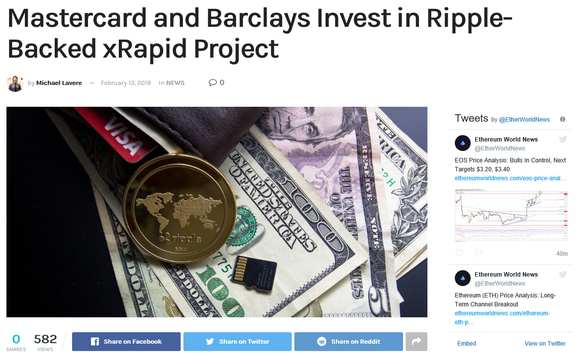 리플의 xRapid 서비스를 이용한 송금 회사인 센드프렌드는 최근 마스터카드와 바클리스에 투자 받았고,