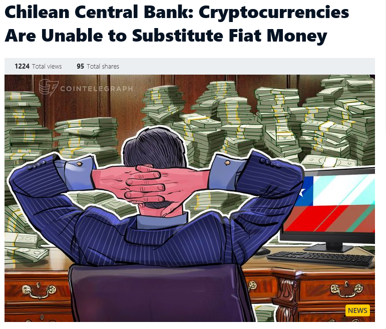 칠레 중앙은행의 암호화폐에 대한 심층보고서에 따르면 암호화폐가 전통적인 화폐를 대체할 수 없다고 한다.
