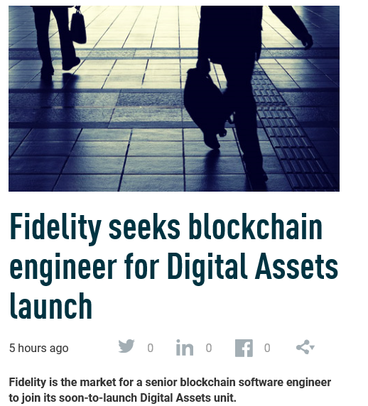 피델리티는 곧 출시될 디지털 자산 거래소에 블록체인 소프트웨어 엔지니어를 합류시킨다고 한다.