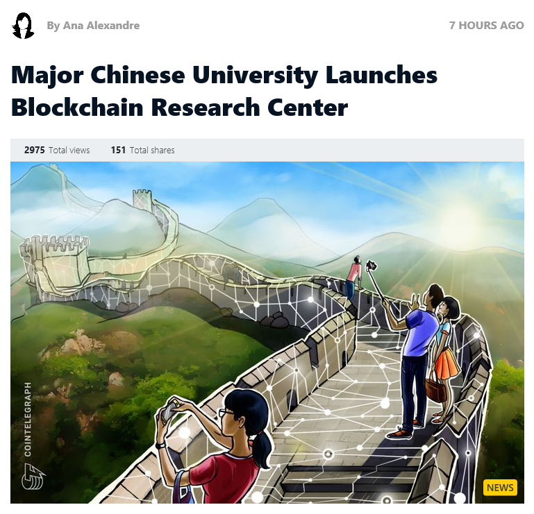 중국에서 가장 우수한 대학 중 하나인 푸단대학교는 블록체인 연구소를 개설했다고 한다.
