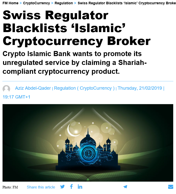 이 증권사는 이름에서부터 알 수 있듯이 이슬람 율법인 샤리아를 준수하는 암호 화폐를 홍보하고 있었다.