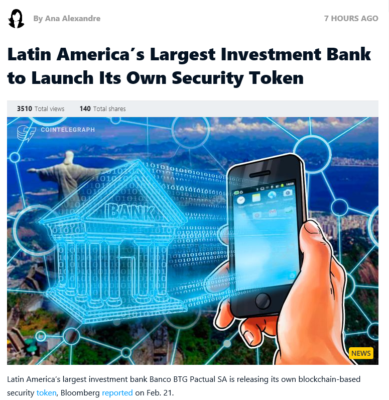 BTG의 파트너인 안드레 포틸리호는 은행이 몇 년 전부터 암호 화폐의 기술을 탐구하기 시작했고,