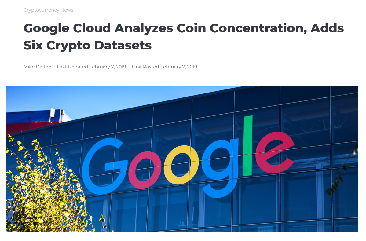 2018년 2월 구글 클라우드에는 비트코인 데이터를 도입했고,
