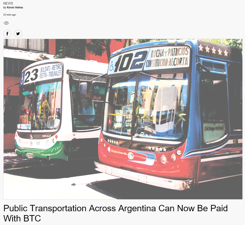 이제부터 아르헨티나에서는 공공 대중교통 요금을 비트코인을 통해 지불할 수 있다고 한다.