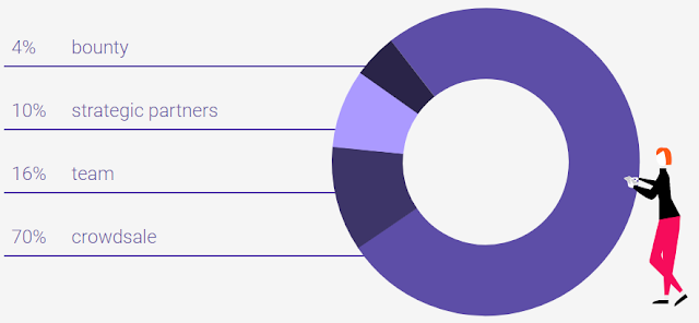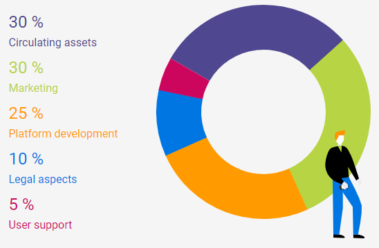 - 30% — circulating assets for continuous work of the platform with contactors and maintenance of work of the in-built marketplace;