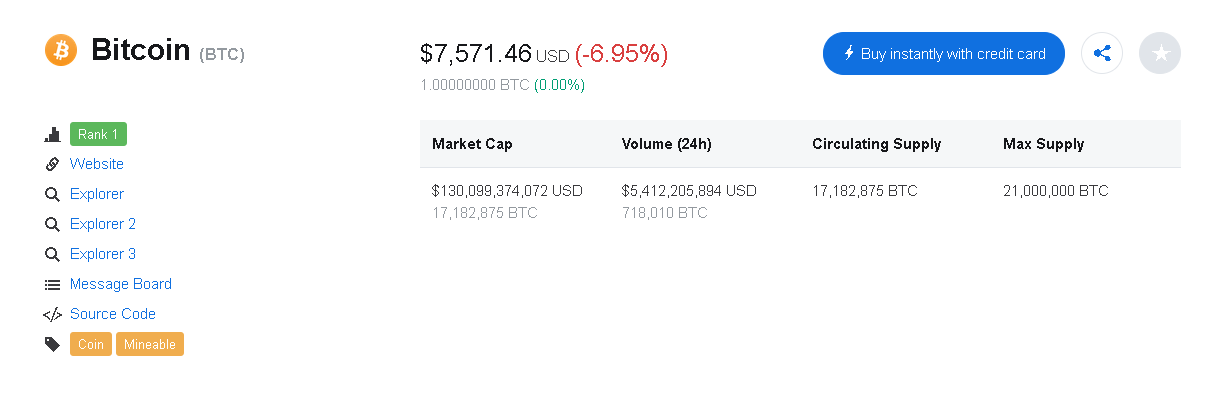 Right now the price of bitcoin has dropped quite a bit. It was doing so good being over $8,000. Well now it's all the way down to $7,571 so I hope that it goes higher in the next few days. It has gone down by 6.9% in the last 24 hours so I hope that we don't have another red day like this.