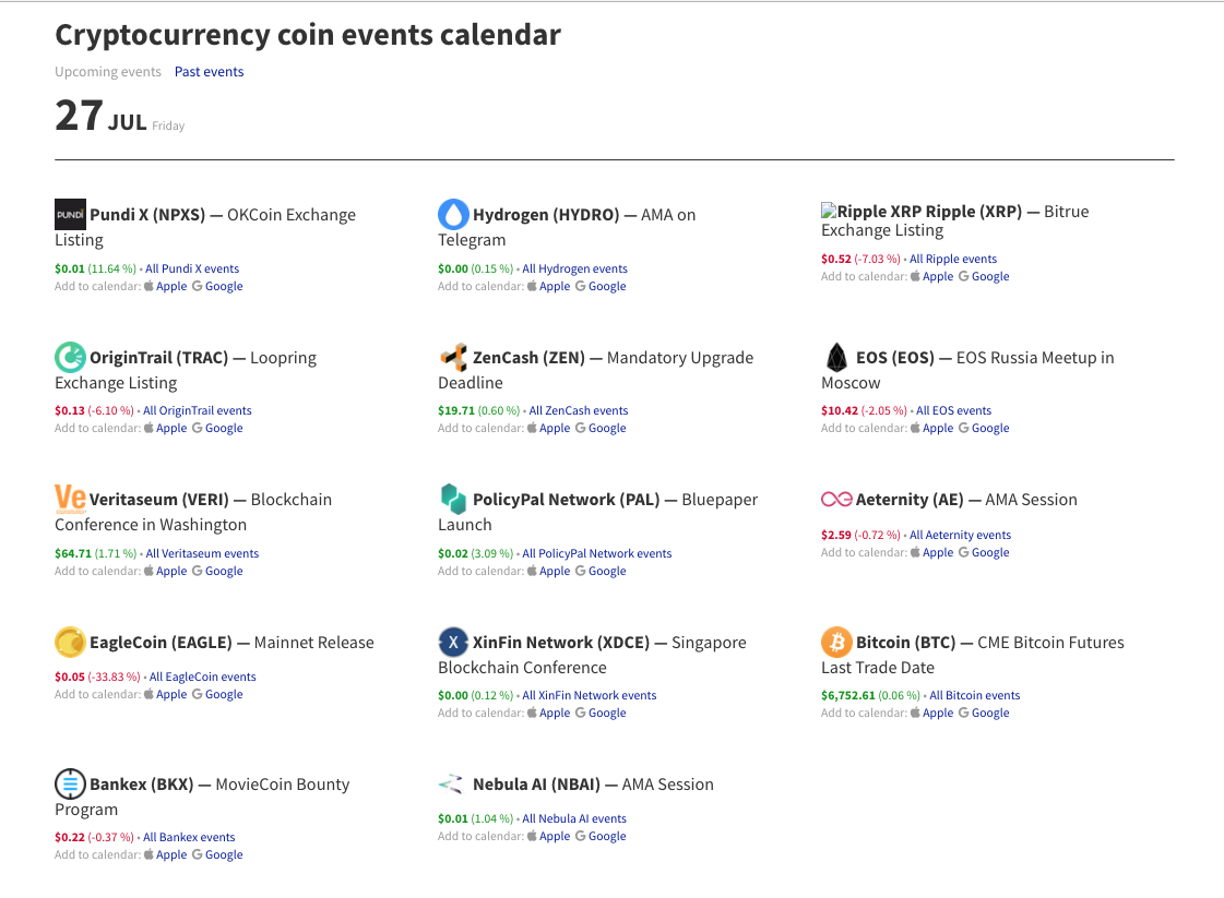EVENTOS CRYPTO PARA EL 27/07/2018
