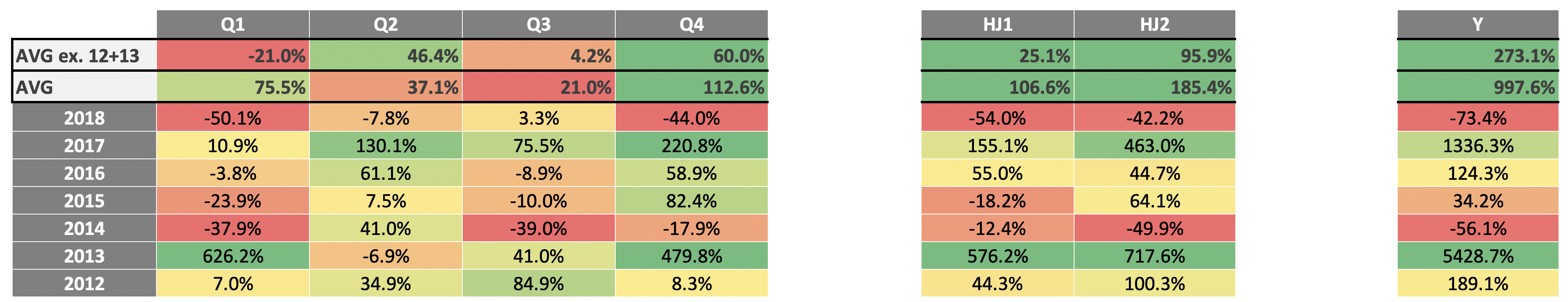 quarterly/half-yearly/yearly performance