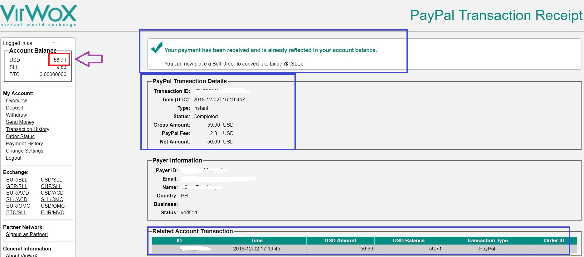 දැන් ඔයාලට නිල් පාටින් ගණුදෙනුවේ විස්තර හා රතු පාට කොටුවෙන් ඔයාගෙ ගිණුමට USD ඇවිත් තියෙනව දකින්න පුලුවන්.