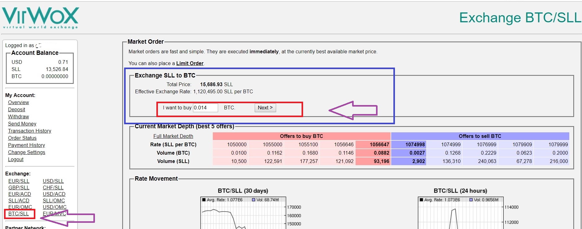 දැන් කලින් පියවරේ විදියටම BTC/SLL බොත්තම ඔබන්න.ඊළගට ඔයාට අවශ්ය BTC ගාන ඇතුලත් කරල NEXT බොත්තම ඔබන්න. මේ පියවරෙදි එක සැරෙන්ම ගනුදෙනුව සම්පූර්ණ නොවෙන්න පුලුවන්.ඒ නිසා අවශ්ය BTC ගාන පොඩ්ඩක් එහාමෙහා කරල ඇතුලත් කරල බලන්න.