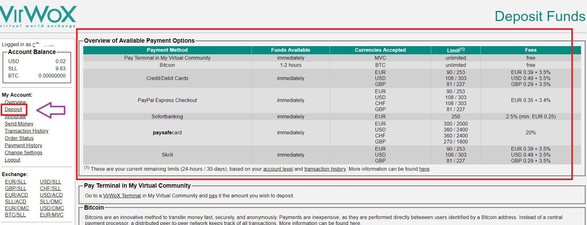 මුලින්ම පහත රූපයේ ආකරයට Deposit බොත්තම ඔබන්න.
