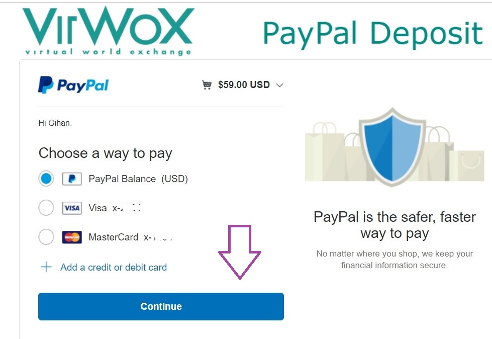 දැන් බොත්තම Continue ඔබන්න.ටික වේලාවකින් ඔයාලගෙ ගනුදෙනුව සාර්ථක වෙලා ඔයලව නැවතත් VirWox වෙබ් අඩවියටම පැමිනේවි.