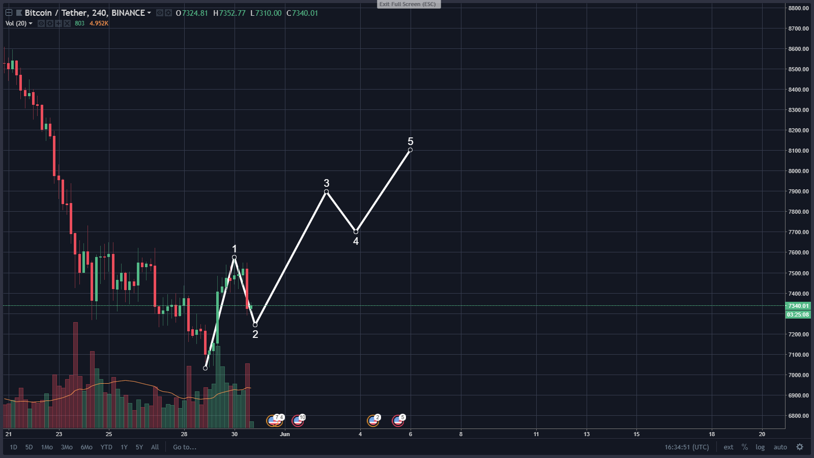 1.If it go to 7230$-7250$ next target is 7880$ Wave 5 target is 8000$-8100$
