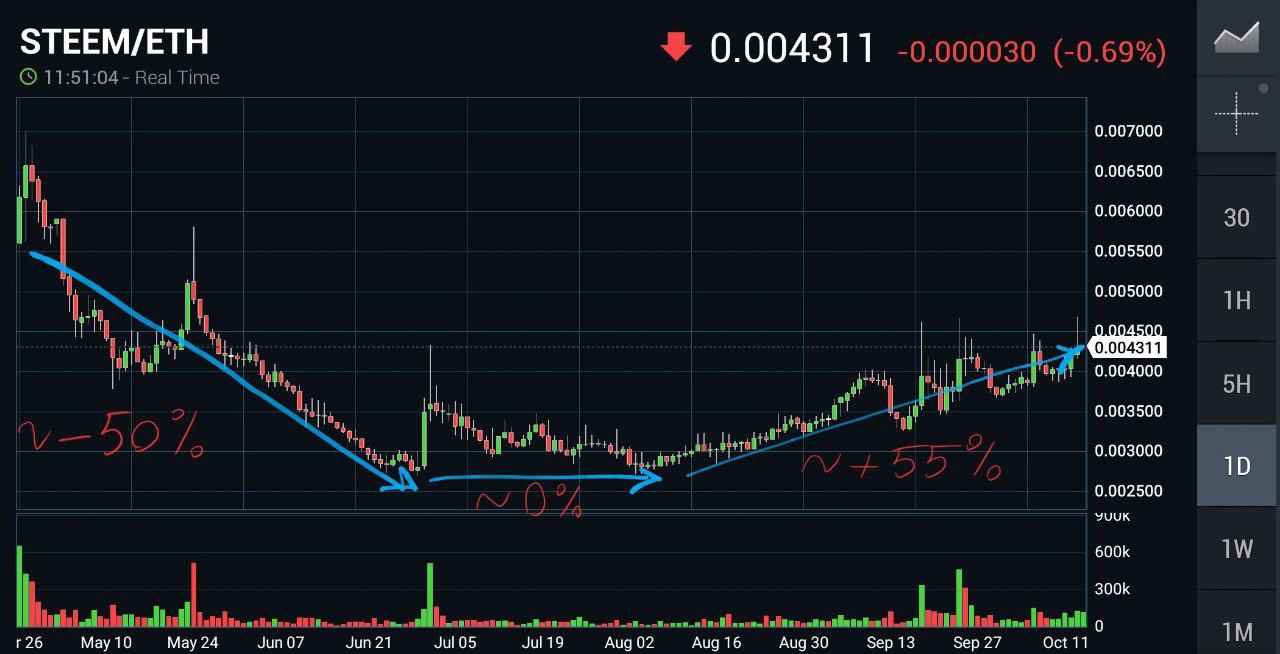 But let's get to the numbers and charts instead of sentiments! here is STEEMETH chart in last 6 months: