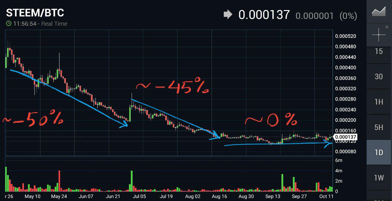 here is STEEMBTC 6 month chart: