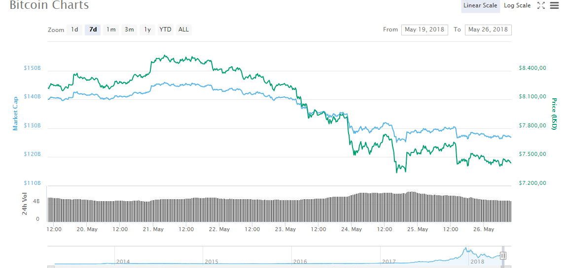 Bitcoin prices today are trading around the $ 7,492 / Bitcoin threshold - down about $ 100 compared to yesterday.