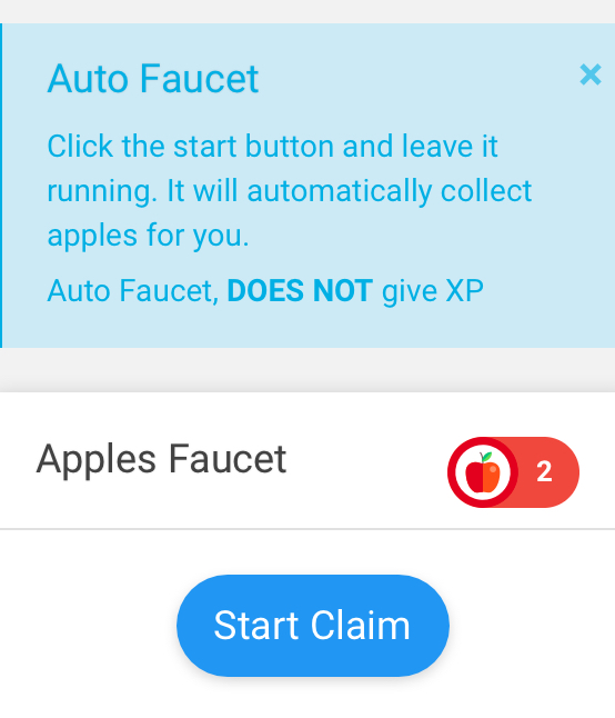 The second option is auto faucet. The auto Apple collector. Start by hitting the claim button.