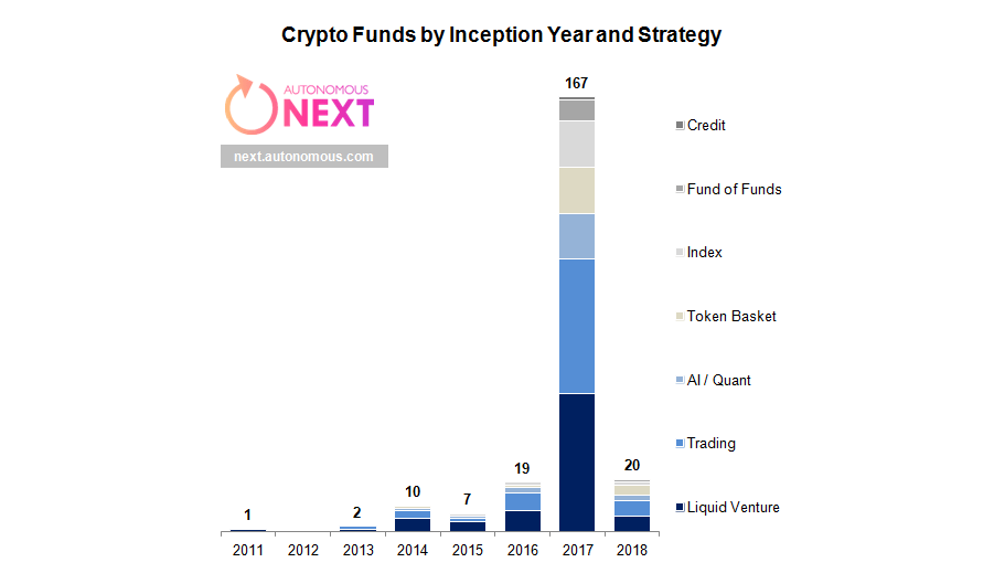 Figures that contrast sharply with those of 2017, year in which they had soared by 2,700%. 167 investment funds specialized in digital assets were then launched, against only 19 in 2016: