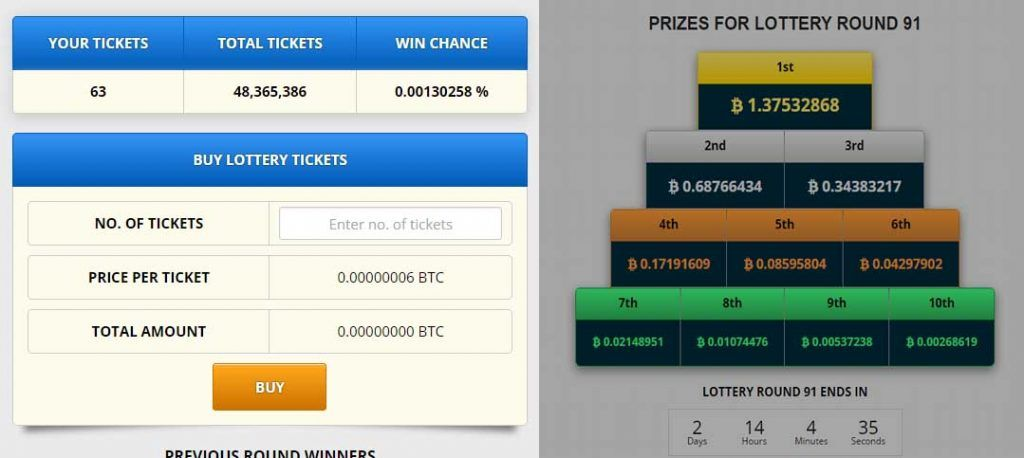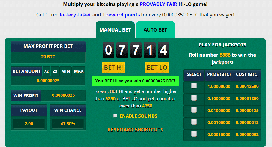 In addition to the satoshis, each time you make 'ROLL!' You will win 2 lottery tickets and 2 Reward Points.
