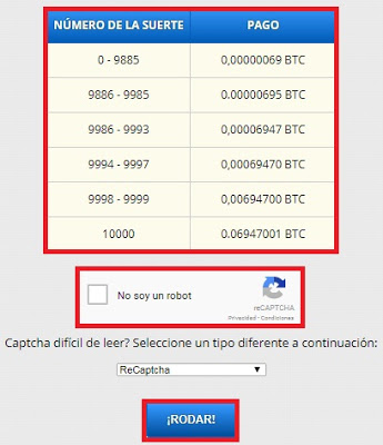 Depending on the number obtained, the amount indicated in the table is earned. You must bear in mind that the prizes vary constantly depending on the price of Bitcoin. You can try your luck and make a run every 60 minutes.