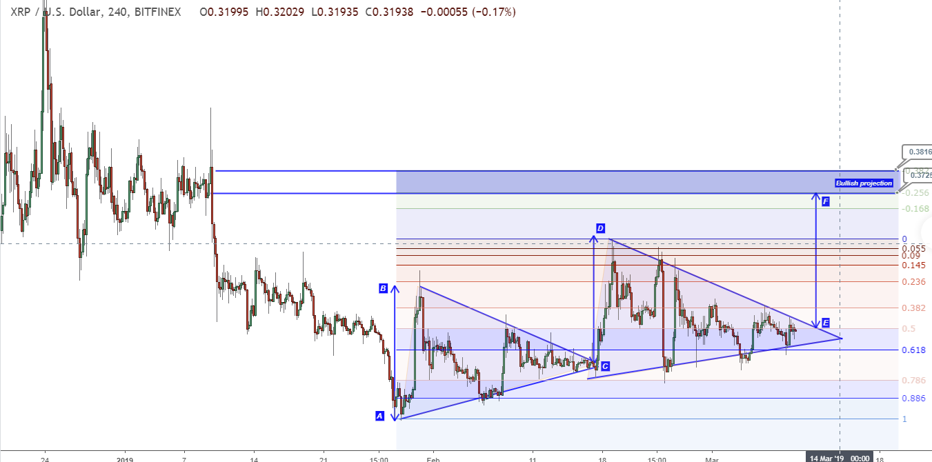 Ripple perform double symetrical triangle, and almost reach the end of triangle.