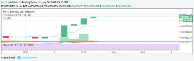 MFT is another one that I got and I’m selling. Could she go higher? Absolutely!! We just don’t have enough chart action to tell me. I’d rather get out, take my gains and not stress over it. I paid 0.00000235 BTC for it two days ago. I just sold it at 0.00000308 BTC. I will absolutely take my 31% gain and go home a happy camper.