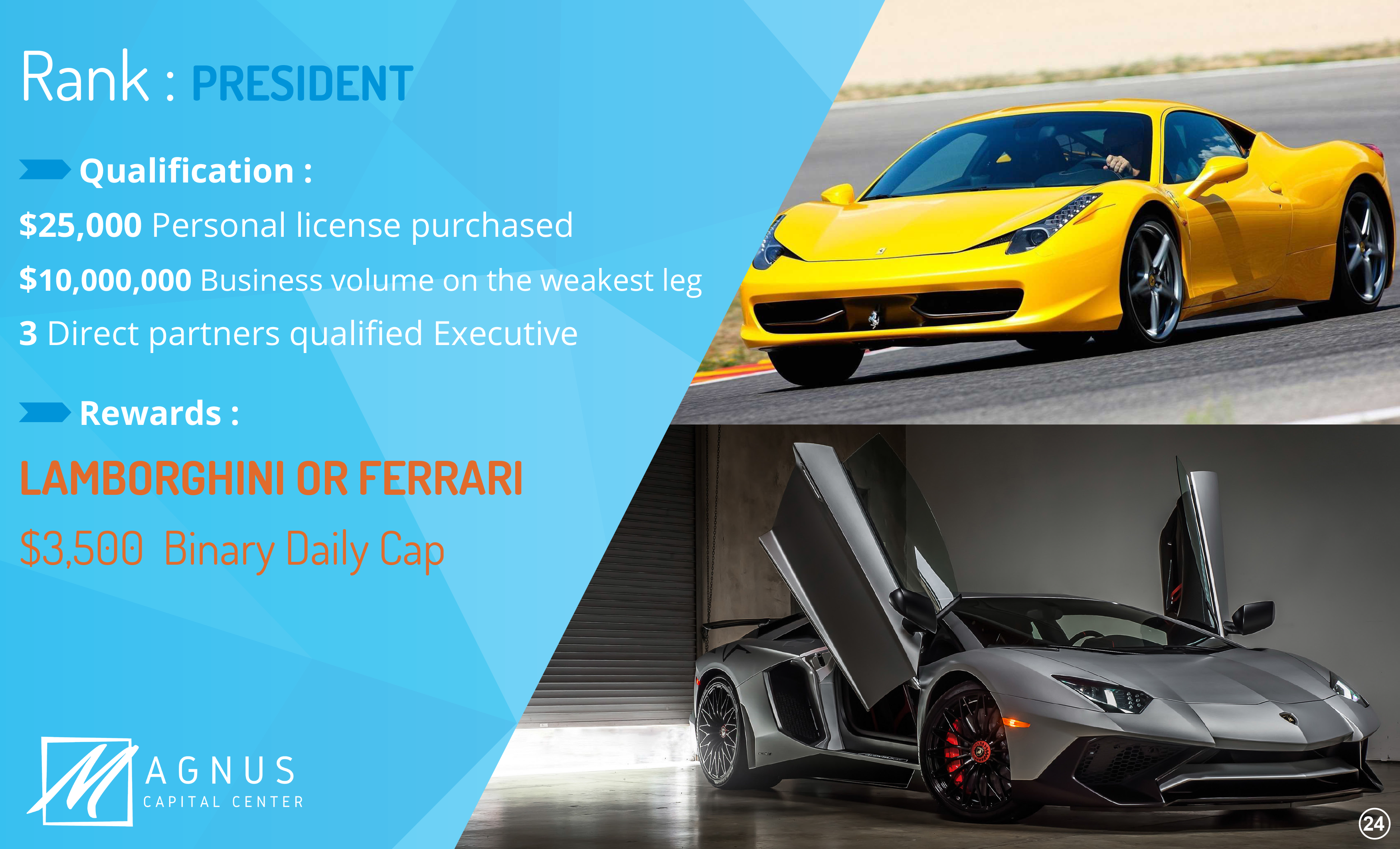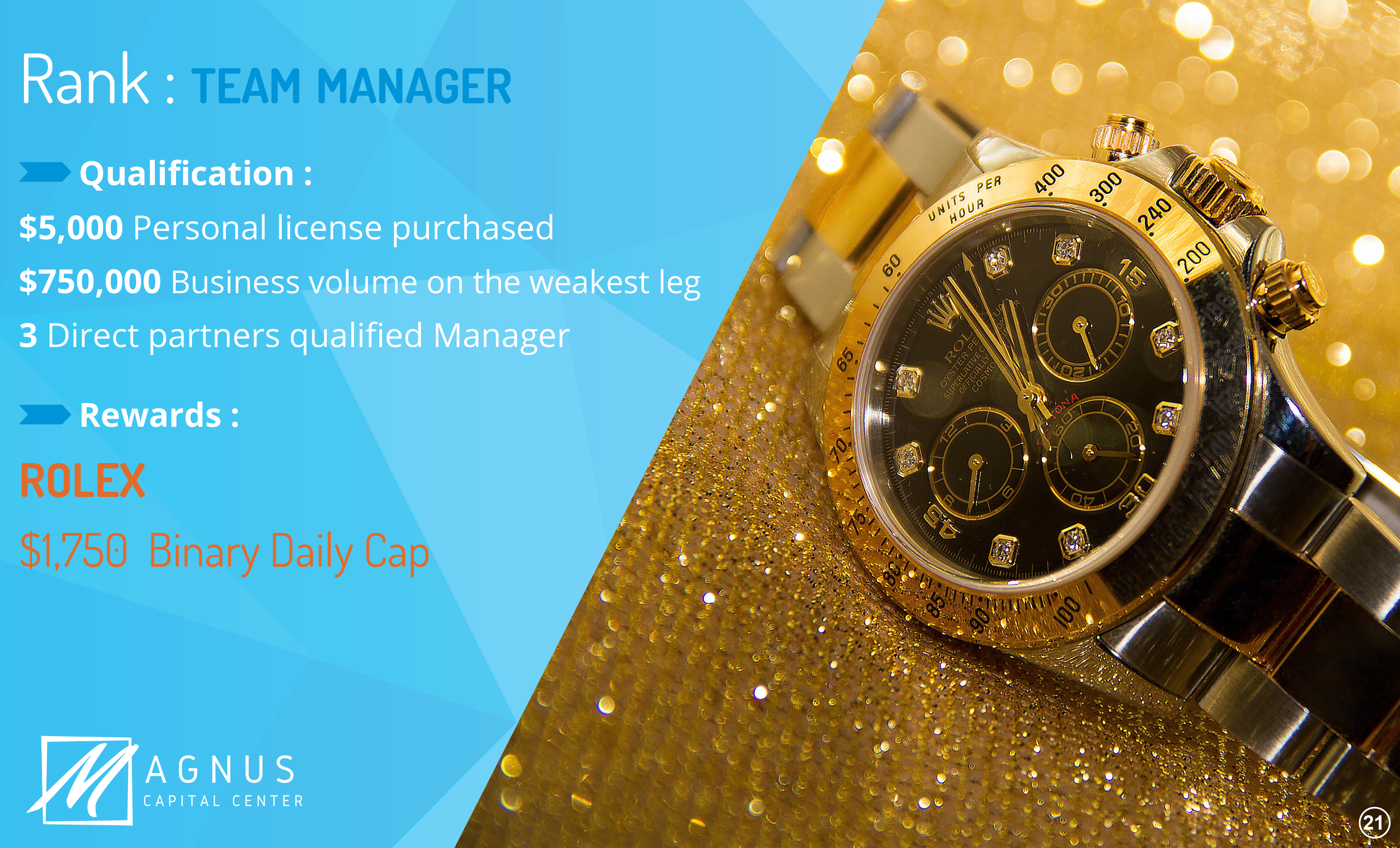 Once being a member of Magnus Capital Center, you are able to build a wealthy career and earn great prices!