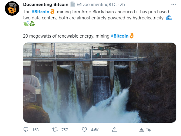 Then you factor in that many of the miners are using renewable sources and moving even more towards that direction in the future...