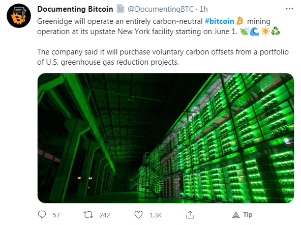 Even if bitcoin were to become public enemy number one over the energy consumption, the fact that it is transitioning towards renewables makes that argument mostly a non starter.