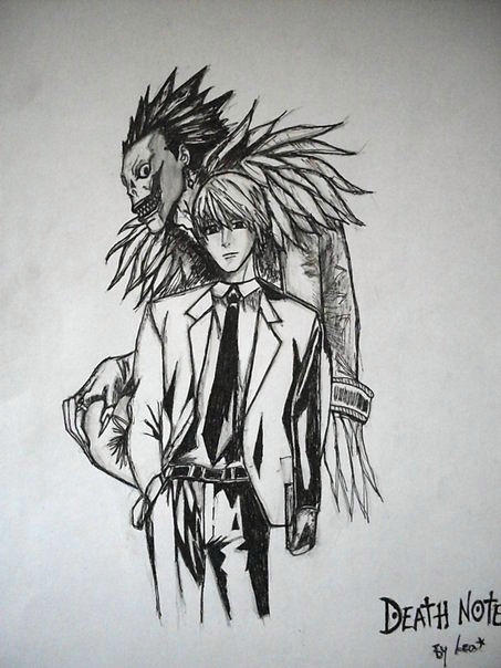 Death Note is a very popular manga that was created by Tsugumi Ohba and illustrated Takeshi Obata in 2003. It is the story of a high school genius named Light Yagami, who happens to randomly find a mysterious book called the "Death Note". The Death Note is a sort of magical book that can kill a person, should somebody write the name of that person into it (at the same time of picturing an image of the victim).