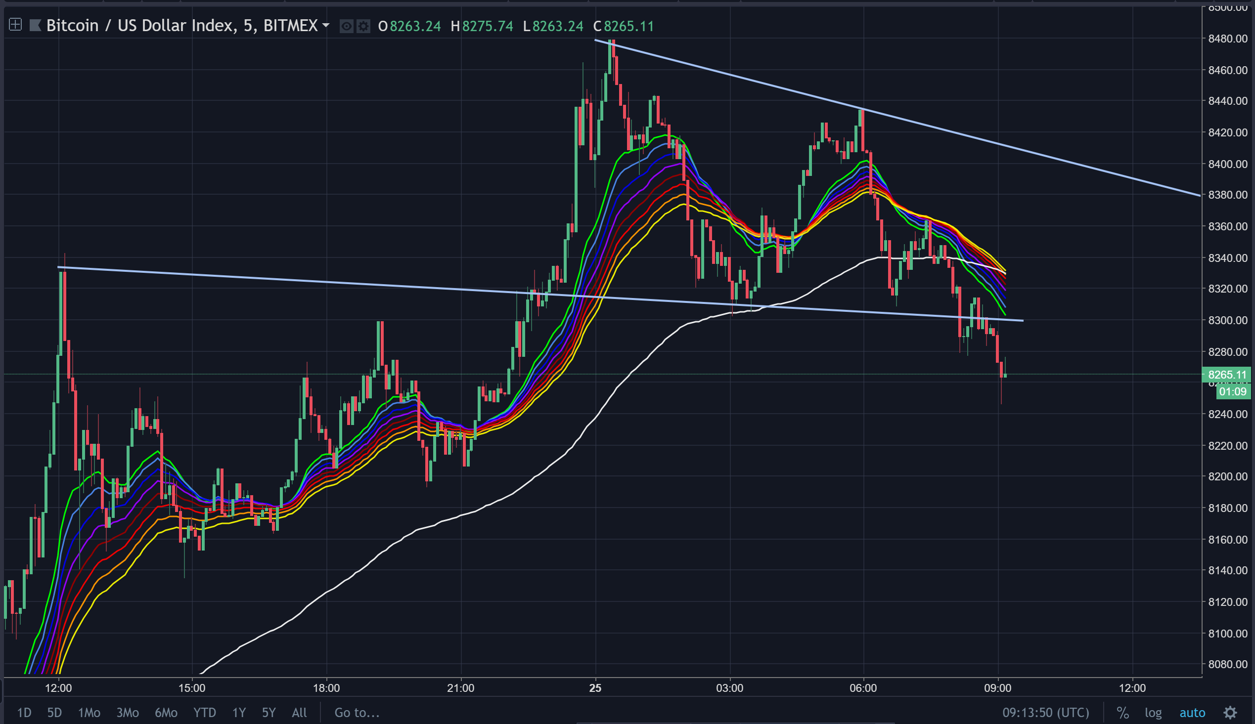 This is a 5 min chart but here we start to see a turning around of the moving averages.