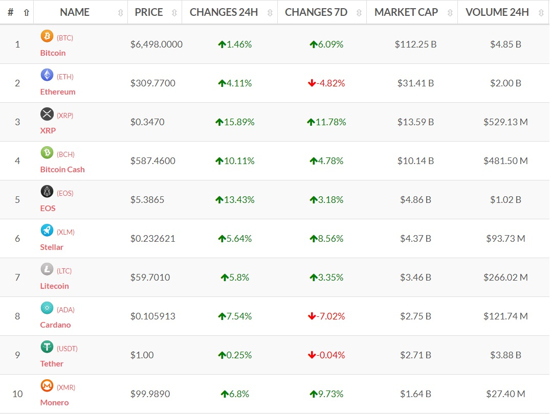 In the top 10, the coins rose steadily at relatively good rates (over 5%).