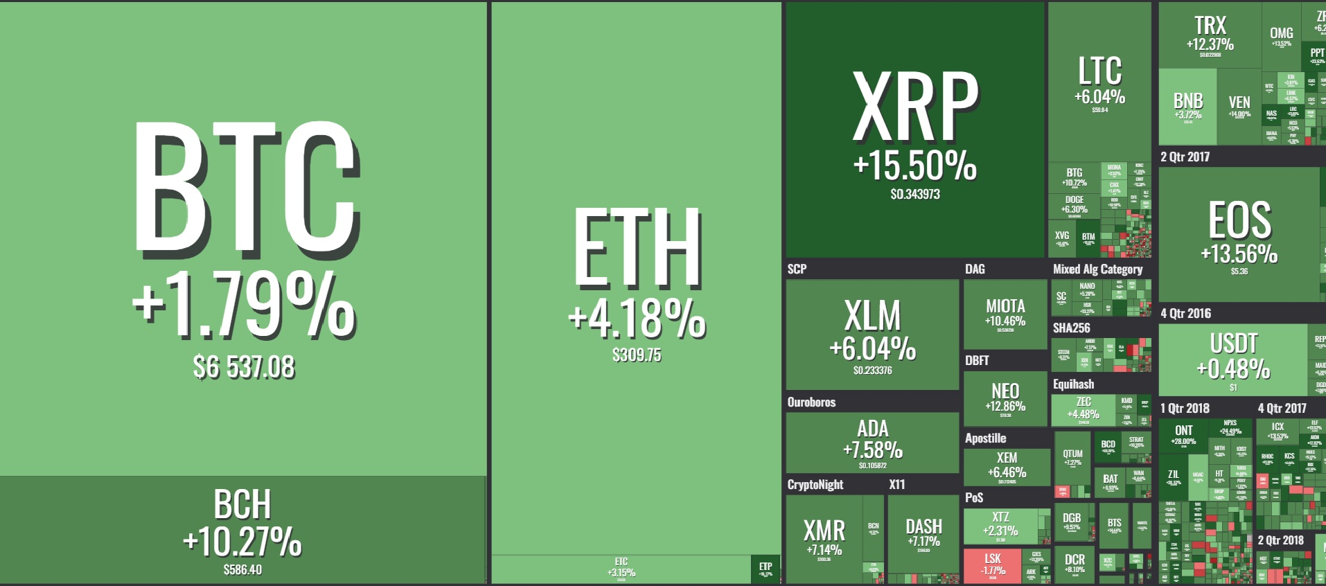 Ethereum increased 4.11%, BitcoinCash increased by 10.11%, Ripple increased by 15.89%.