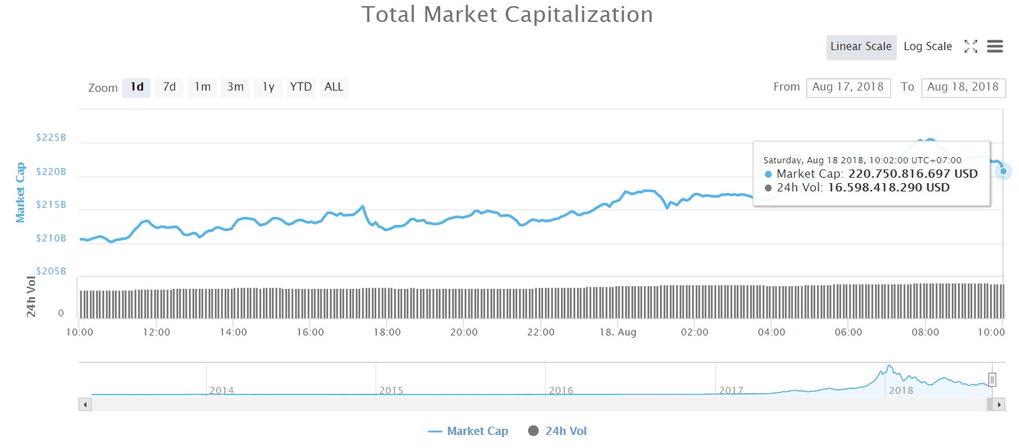 Total digital market capitalization today reached $ 220 billion, up $ 10 billion compared to $ 210 billion at the same time.