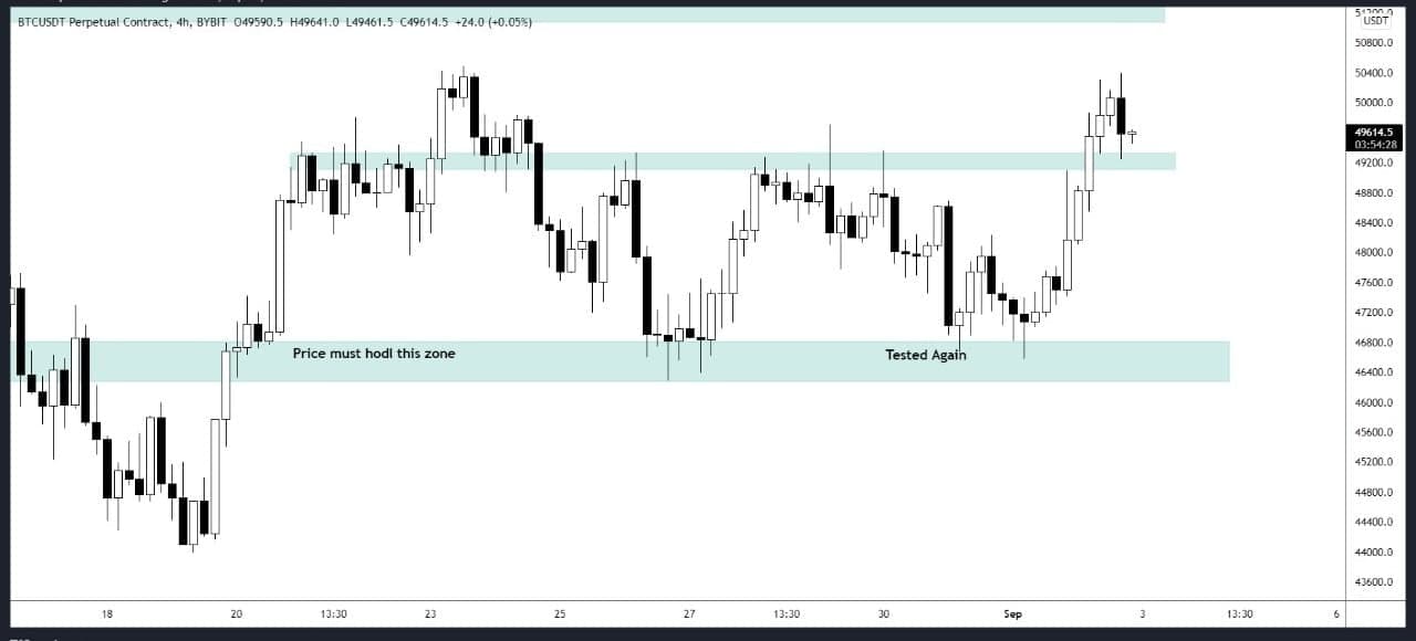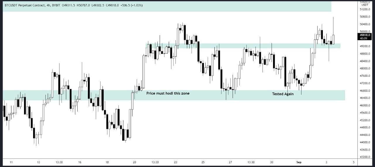 Bitcoin able to hold the $49,300 support and no 4-hour candle close below it yet. There are big wicks both sides showing the fight between bulls and bears going on. BTC need to go above $51,000 soon otherwise we may see a flash crash also.