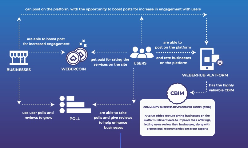This is a token that fuels the weberhub marketplace which connects business to users on an easy to use platform rewarding them for engagement on the platform with in an ads network system. Also it is an ecosystem that is designed purely for business owners, marketers and advertisers to efficiently market their products, goods and services, also used to connect with their customers better and customers get rewarded for using the platform. Therefor this system brings the customer and business together and increases the interaction between them with low cost advertising and is called the weberhub.