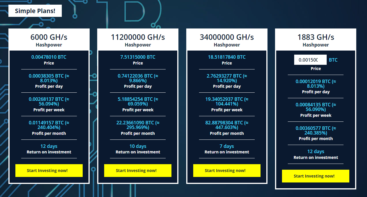 Minimum invest is 1883 Gh/s = 0.0015 btc