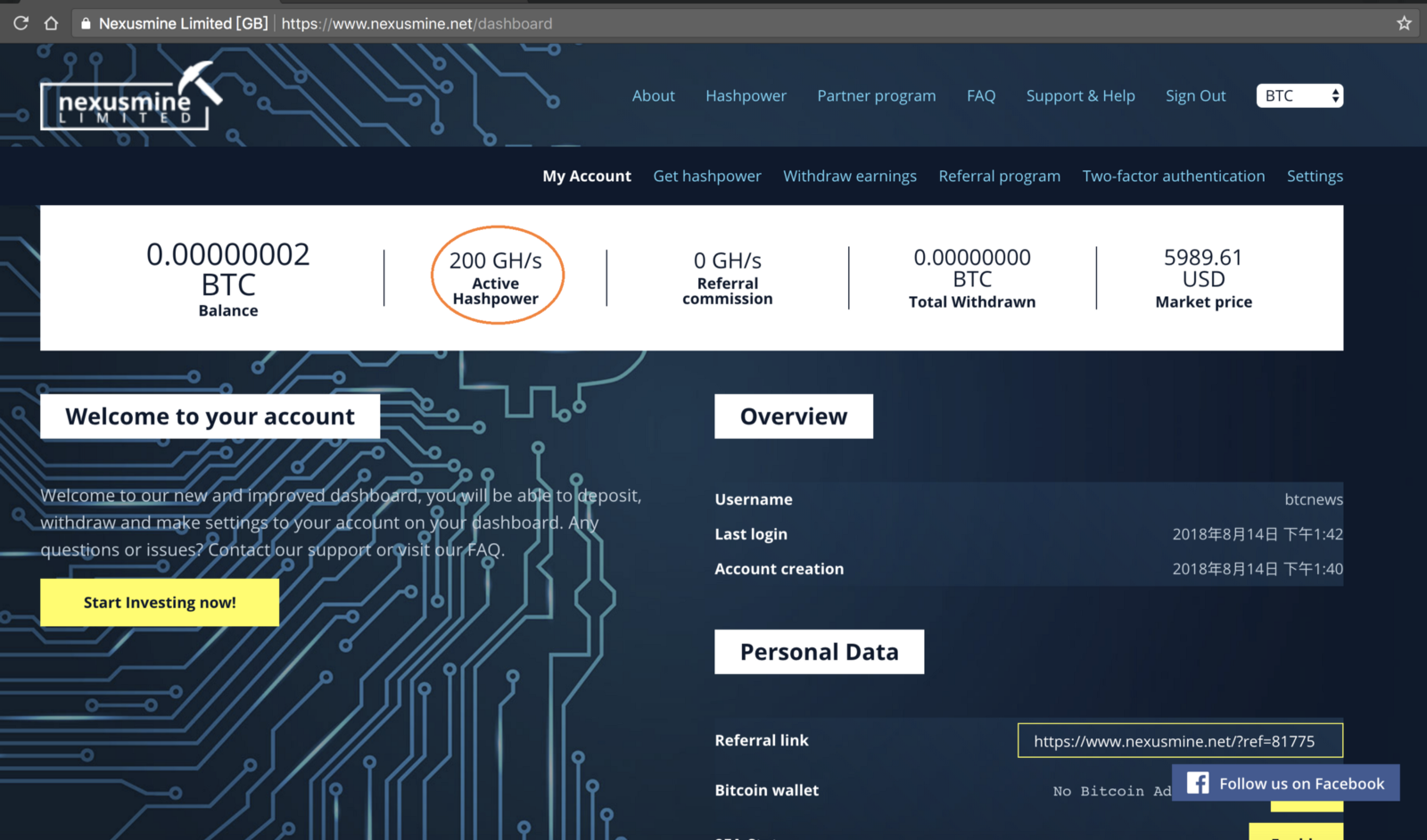 Nexusmine — Cloud Mining Bitcoin (free 200 Gh/s life) - updated 2018/08/20