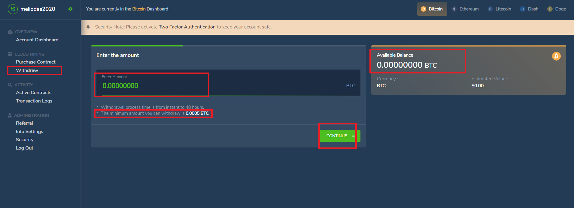 Multimine is a cloud mining platform for anyone to start mining cryptocurrencies without purchasing any mining devices, spending time & effort on mining or being negatively affected by price volatility of crypto assets. Simply choose the coin to be mined and proceed with one of the plans offered for that coin type. With our worldwide mining facilities, Multimine handles the rest and gives you the flexibility to easily move your capital without any restrictions.