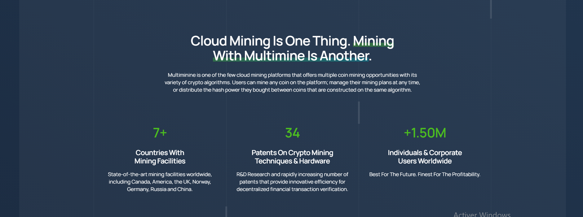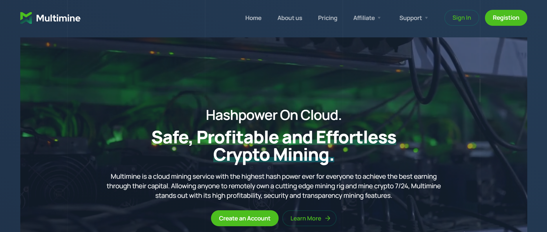 Multimine is a cloud mining service with the highest hash power ever for everyone to achieve the best earning through their capital. Allowing anyone to remotely own a cutting edge mining rig and mine crypto 7/24, Multimine stands out with its high profitability, security and transparency mining features.