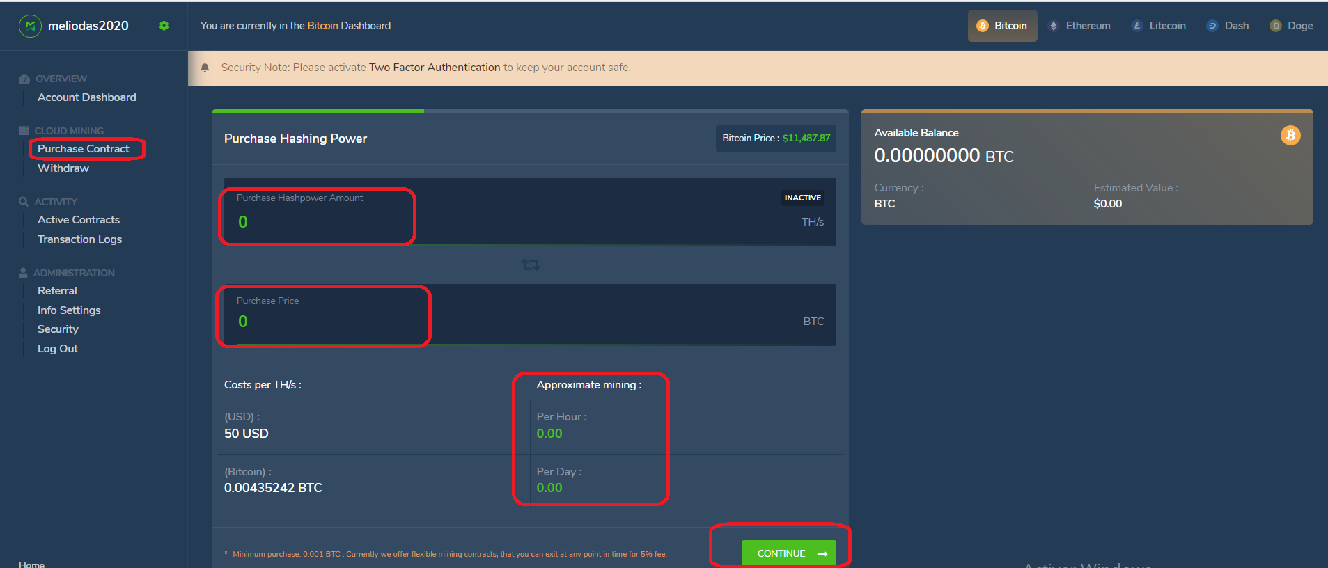 just write the price you want to invest and it will show you the Approximate mining earnings then click continue and send the amount to the website's wallet .