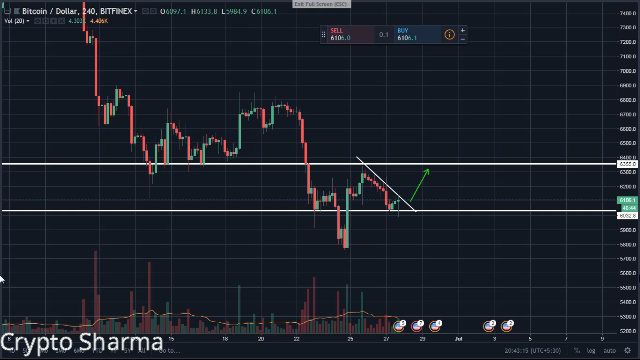 If btc broke the above trend line then we can see bitcoin price towards to $6355 as shown in above image.