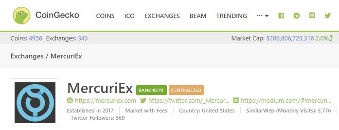 MercuriEX now on CoinGecko.