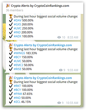 You can also get Get Crypto Alerts Bot for Telegram https://t.me/zzchannell The bot Detects change in social sentiment on an hourly basis!