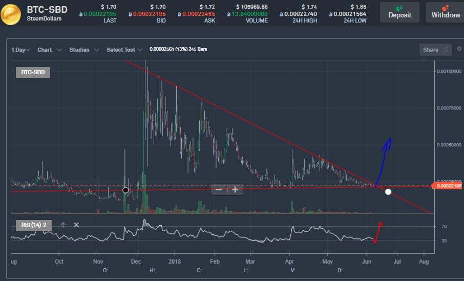 SBD/BTC Buy Signal 2018.06.06mhmtdr0 (57)in #bitcoin • 8 years ago (edited)Buy SteemDollars at price 0.0002200 btc and lower, Sell at price 0.0003400 btc and higher. #cryptocurrency #steem #sbd #steemdollars