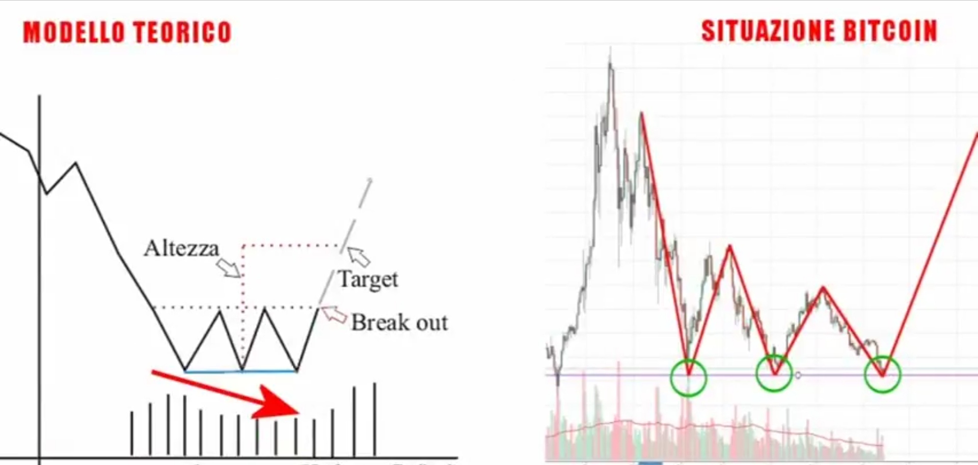 Volendo cercare segnali di ripresa si può notare graficamente la formazione di un triplo minimo che in analisi tecnica vuol dire un inversione del trend, però purtroppo al momento, i volumi che rappresentano la benzina per quest’inversione sono molto scarsi anche se come si evince da questo esempio con la formazione del triplo minimo i volumi toccano il fondo per poi risalire gradualmente ed accompagnare l’aumento dei prezzi