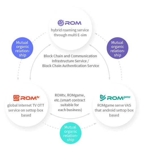 즉, ROM Token은 모바일 데이터 구매 및 데이더공유에 대한 보상 수단으로, ROM-TV Token은 스마트TV 컨텐츠 및 홈쇼핑 참여 등의 매매수단으로 , ROM-GAME Token은 게임컨텐츠 구매 및 게임보상, 게임아이템 거래 등의 수단으로 사용되게 됩니다.